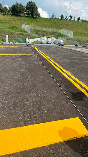 •Líneas de advertencia en el suelo: se usan para marcar el perímetro operativo y evitar que personas o vehículos se acerquen demasiado. Pintura tráfico reflectiva o elementos como conos también ayudan a reforzar la visibilidad.